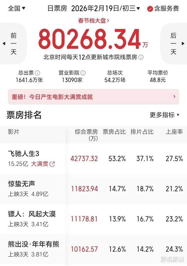 从各方面来看,《镖人》都称得上是一部良心之作,甚至可以说是今年春节档所有电影中,最值得观看的一部。也正因此,越来越多的观众开始大力推荐《镖人》,到了第三天,该片也终于开始正式发力。